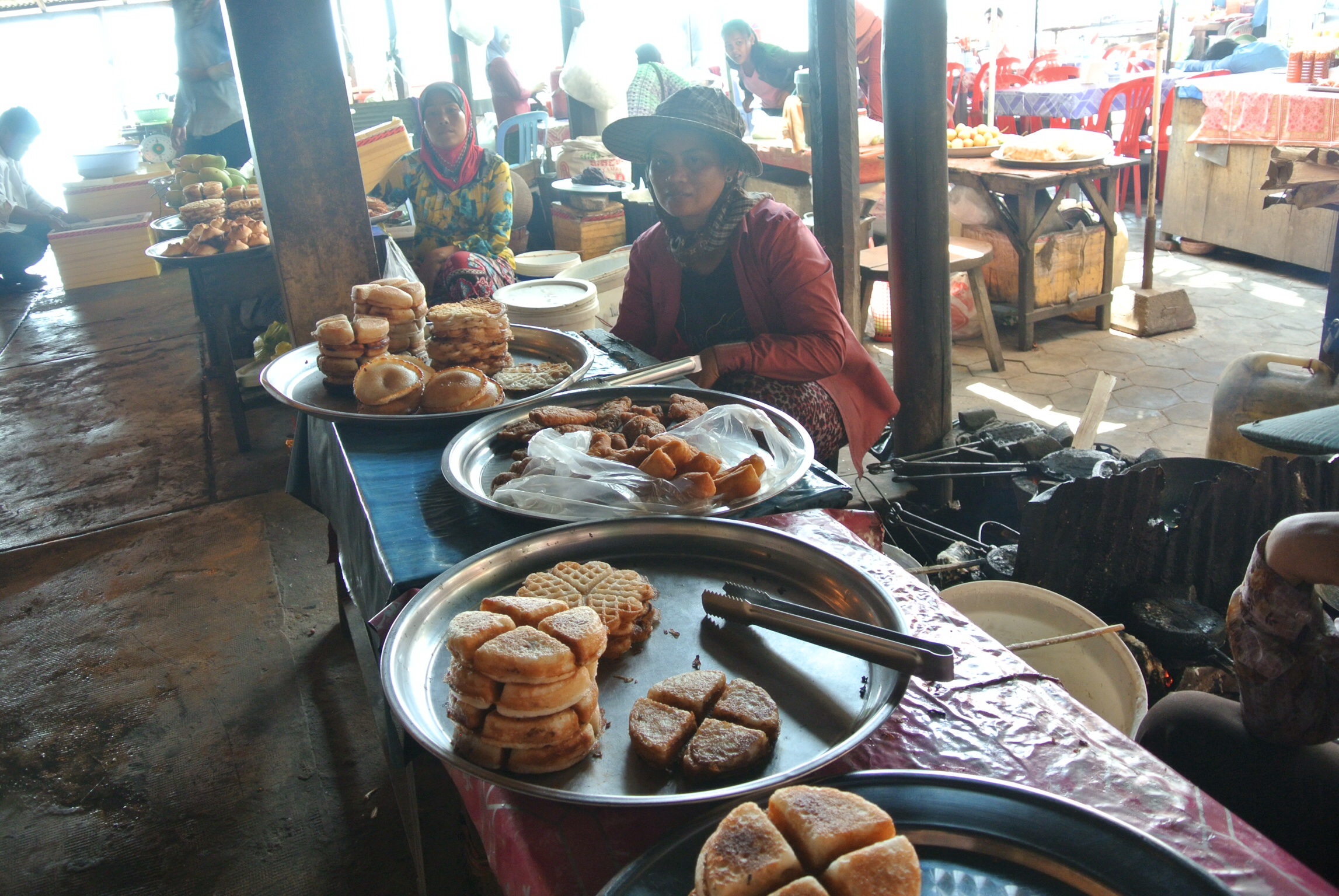Kep was just as stunning — if not more so. The drive along the stretch of the water was very scenic. I was lucky to stumble upon a lovely lady at the market who made some fine waffles, some of which were plain and some of which were filled with sweet beans and coconut. Just what I was craving. I think I stuffed myself unconscious that day!
