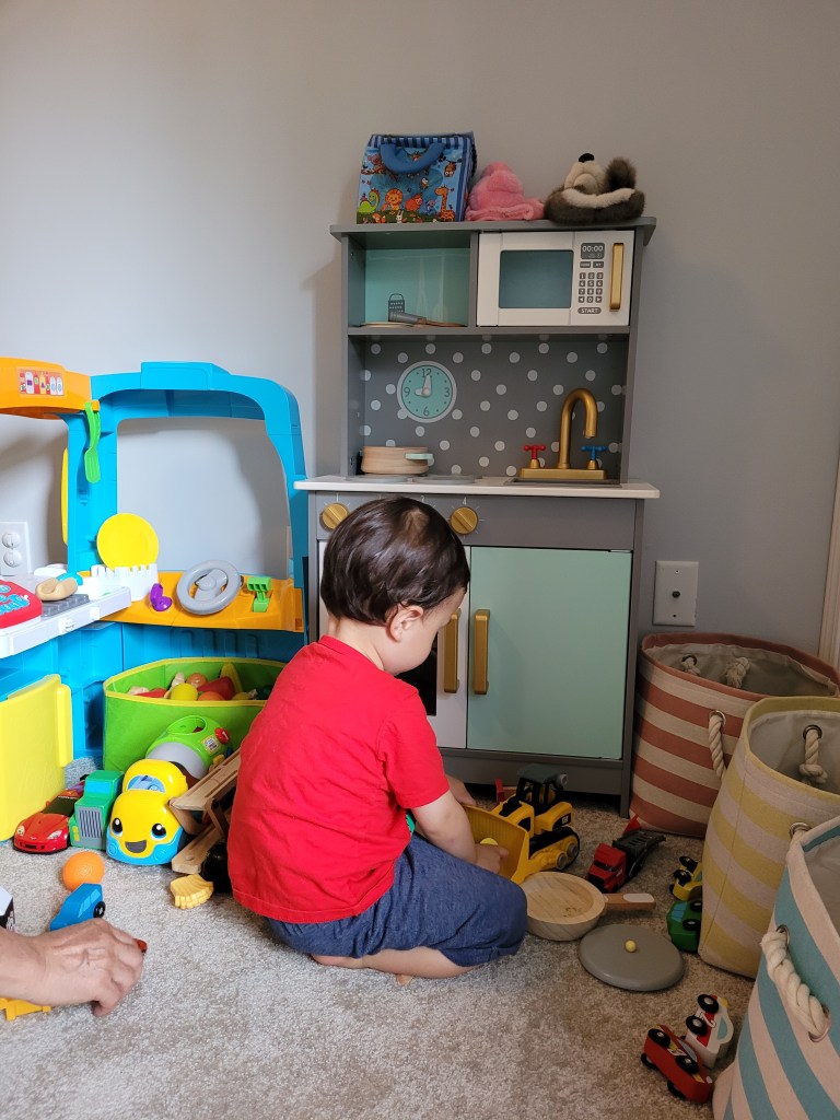 Having fun playing with his toys in his own room